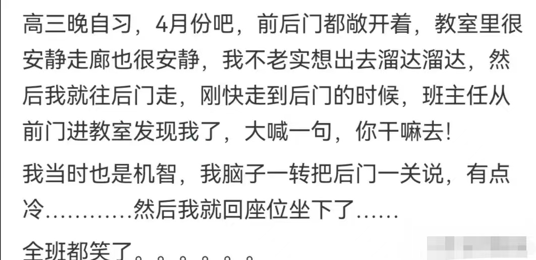 还有个学生的反应也绝了。网友说,上学时老师抽查背书,点到一个没背熟的同学,同学站起来支支吾吾,老师脸都沉了。结果那同学突然说:“老师,我其实背熟了,但刚才想到您说‘背书要走心’,我怕自己念得太急没感情,想再酝酿一下。”说着还真放慢语速背了两句,虽然磕磕绊绊,但态度很诚恳,老师居然没批评他,还说:“不错,知道走心,下次继续努力。”网友调侃:“这脑子转得比翻书还快,老师都被绕进去了!”